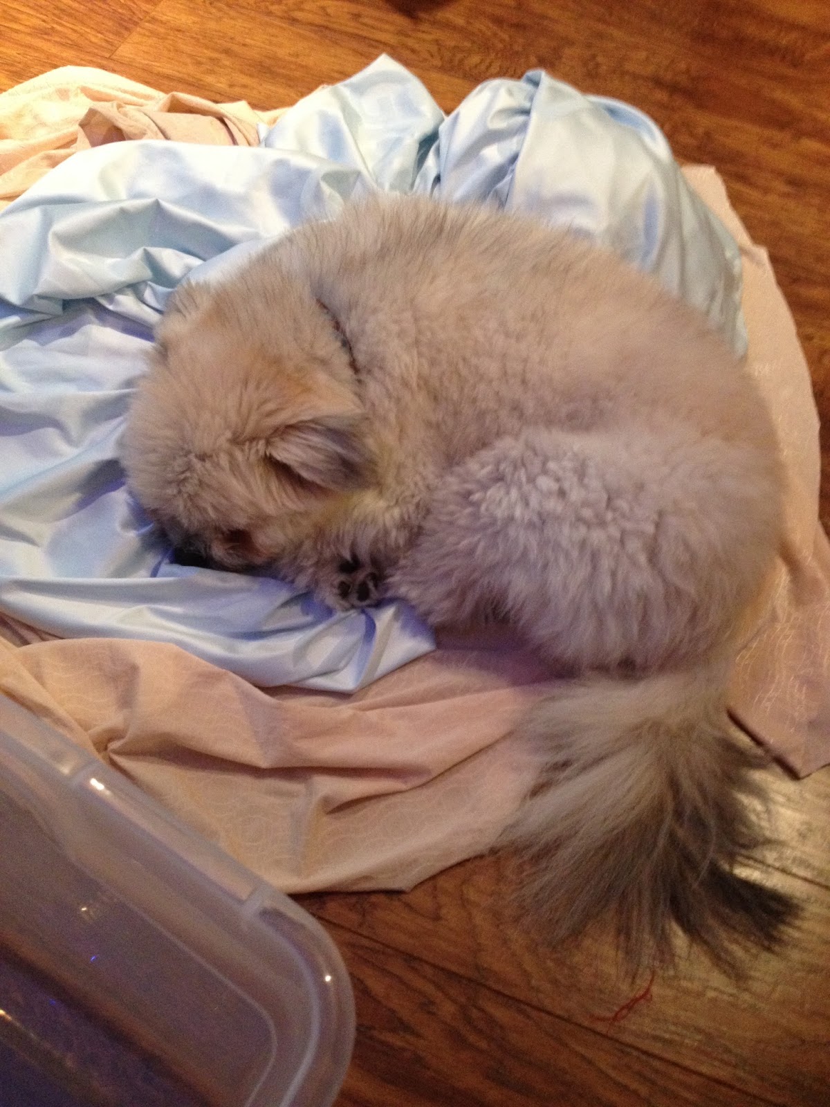 And I had my sleepy little helper with me, who was happy to keep any fabric I set on the floor warm for me- how thoughtful.