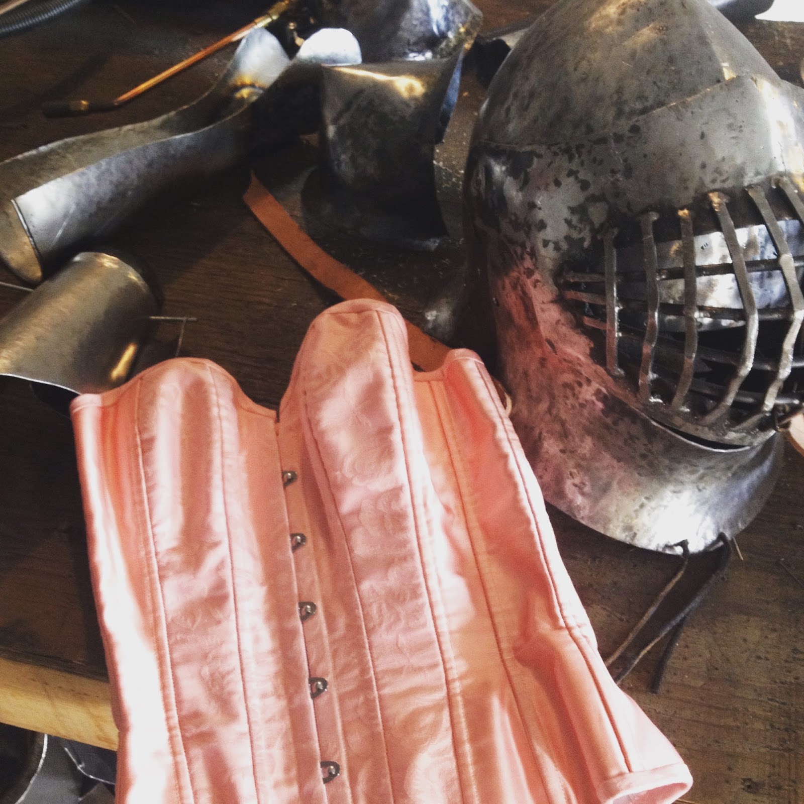 Adding armour to the mix of course! We met with a very talented armourer and talked about all the exciting possibilities mixing corsetry with armour! I am so excited to see the future of this collaboration!!