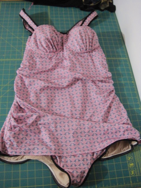 Her first make this month is a bra bathing suit! And she made it using the most adorable pink print with birds- everything is better with a bird print! She made it with a ruched front modesty panel for a lovely retro vibe and ruching under the cups! va va voom! Love it!